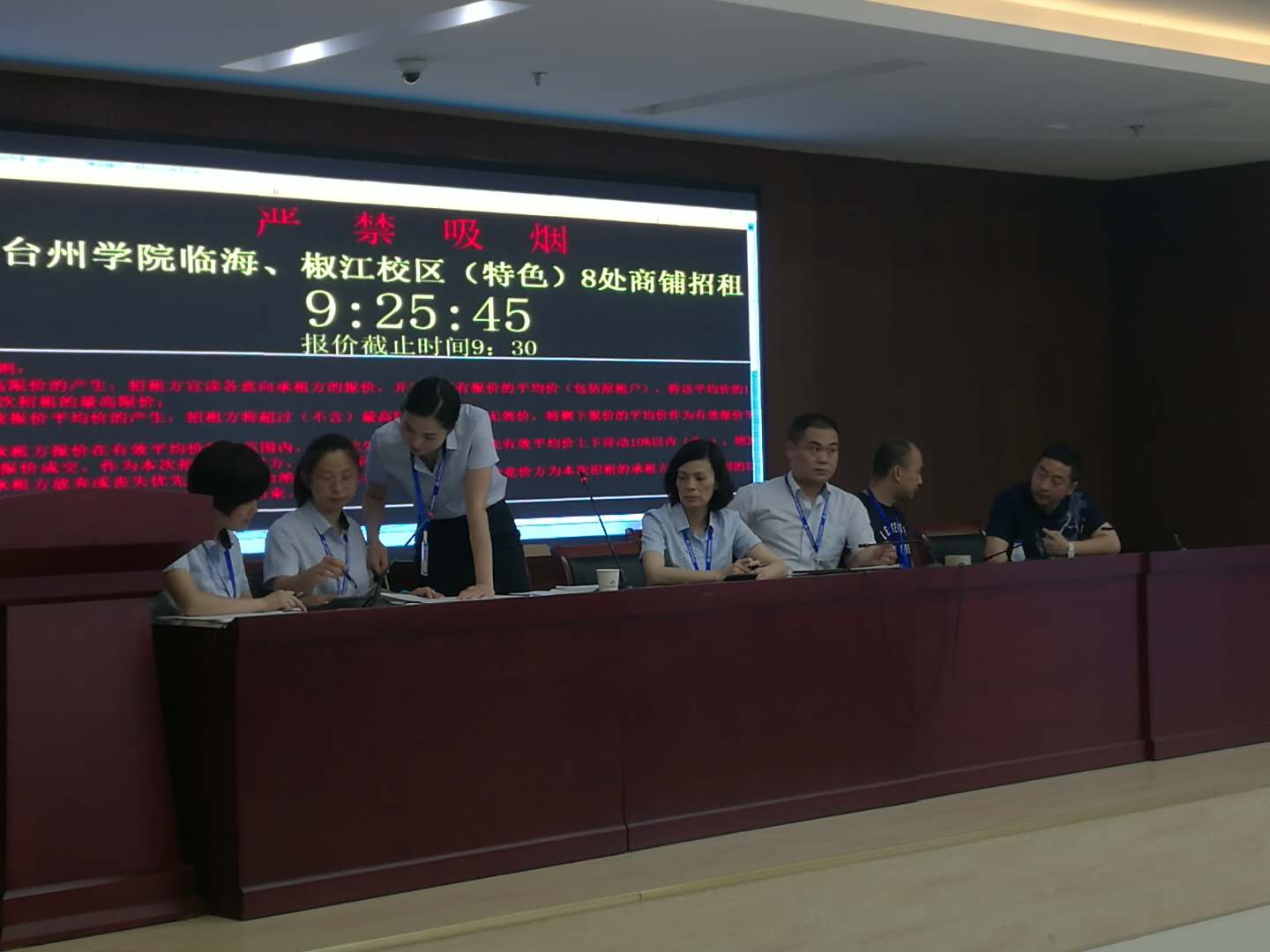 2018年6月11日上午9:30時,在臺州市公共資源交易中心三樓一號開標(biāo)室進(jìn)行了臺州學(xué)院特色商鋪的招租,8處商鋪共101名意向承租方參加。經(jīng)過激烈競爭,最終8處商鋪順利成交。